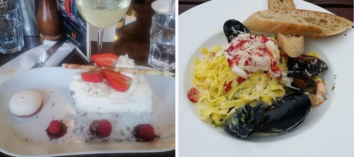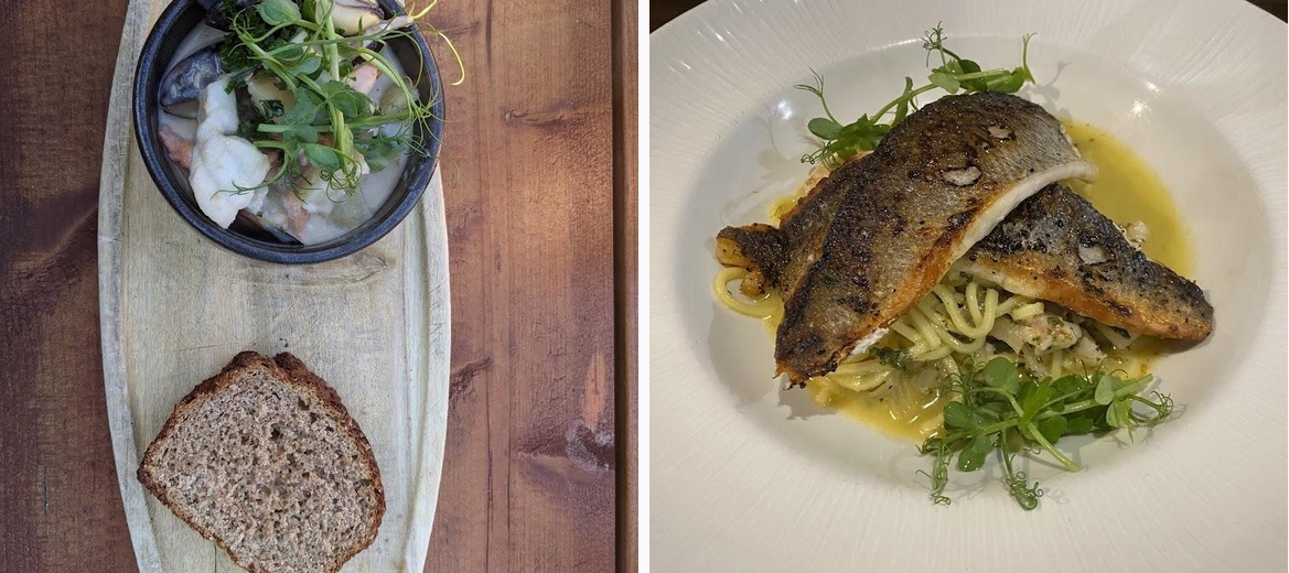 Don’t miss the seafood chowder and scampi. The homemade lasagne is also a local favorite. For dessert, the sticky toffee pudding is a must.